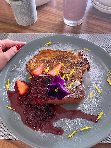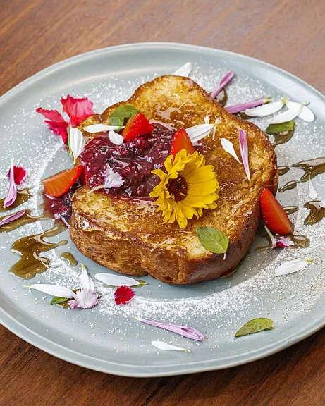 Pan brioche, rebozado en batido francés y sellado a la plancha con canela