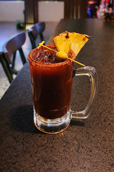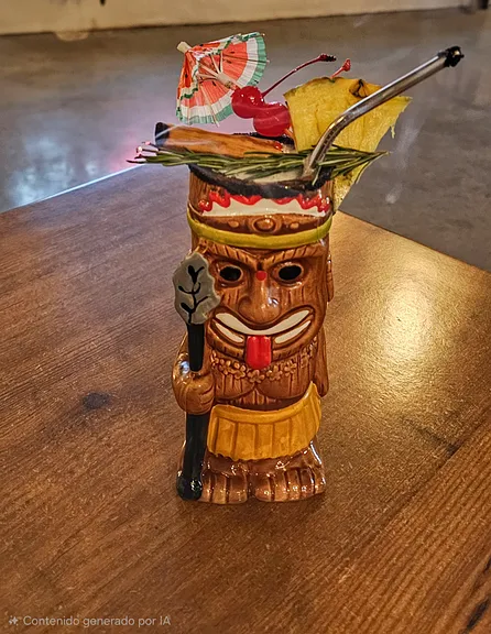 Un Tiki tropical con carácter ahumado y final especiado. Suave al inicio, peligroso al final; Mezcal, Ron & piña
