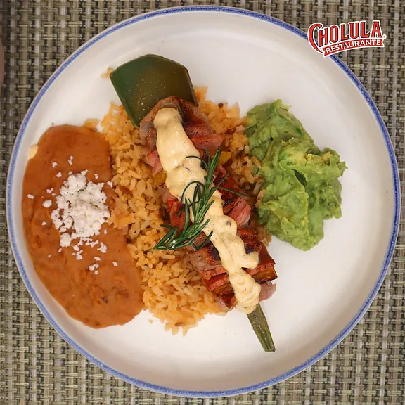(600 g) Chamorro de cerdo cocido al vapor lentamente, envuelto en pencas de agave. Servido con un adobo especial de la casa, se acompaña con frijoles refritos y arroz rojo.