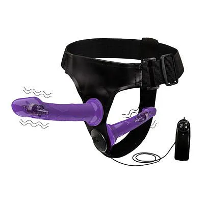 Cintas justables para cualquier tamaño. Para montar el dildo de tu elección. Hecho de vinil. Se pueden poner 2 dildos.
