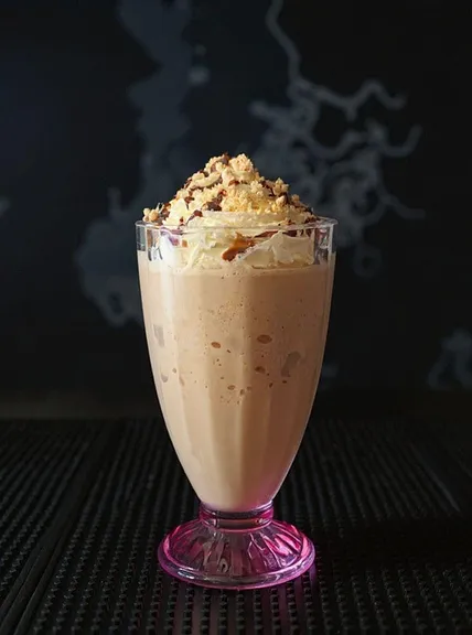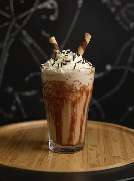 Un shot de espresso intenso recién extraído, vertido sobre una corona de helado de galleta