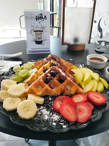 Fruta fresca de temporada acompañada de yoghurt griego con chía, granola artesanal, miel y almendras