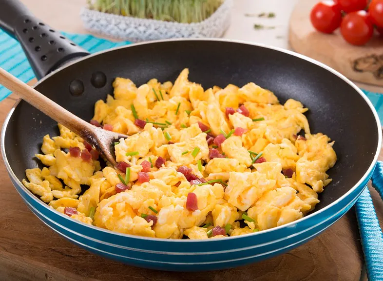 Revueltos con cebolla, cilantro, jitomate y rodajas de serrano