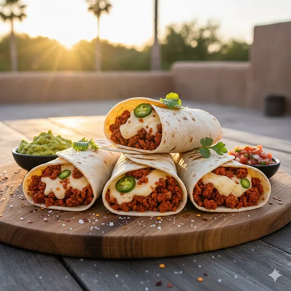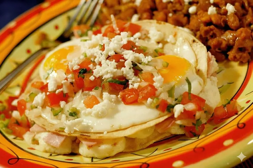 Frijoles puercos, queso menonita, tocino crujiente y pico de gallo