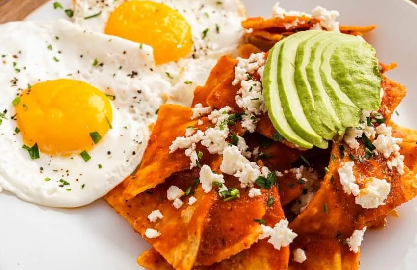Frijoles puercos, queso menonita, chorizo, pico de gallo y aguacate
