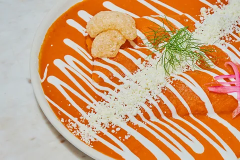Clásico platillo de la gastronomía tapatía, rellenas de queso Cotija, bañadas en una salsa de frijoles. Coronadas chicharrón, queso, crema y cebolla.