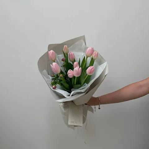 Ramo de 10 tulipanes. Su elegancia y alegría regalará una maravillosa experiencia a lxs que amas, para convertise en un regalo que sera recordado con cariño por siempre. Si quieres un ramo más grande elige la opción con follajes o con otras flores.