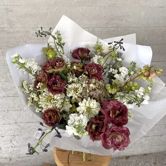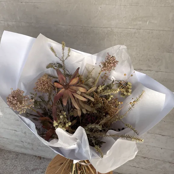Disfruta de la belleza de un toque natural en tus espacios con nuestras flores secas, sin tener que preocuparte por su cuidado. Envoltura de papel blanco.