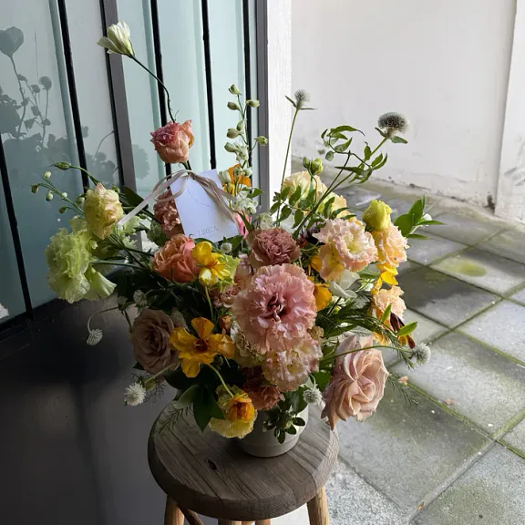 Una mezcla de flores creativa. Sin receta determinada para asegurar una experiencia diferente cada vez y garantizar el mejor resultado. Elegimos lo más fresco y bello que ofrece la naturaleza. Estas flores son diseñadas para toda y cualquier ocasión; recordarle a alguien que le amas, expresar tus sentimientos, conectar con lxs otrxs, alegrar tus propios días o enviar un abrazo a quien no tienes cerca. Elige una opción para ver una referencia del tamaño: