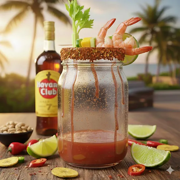 Tarro de cerveza con preparado cubano