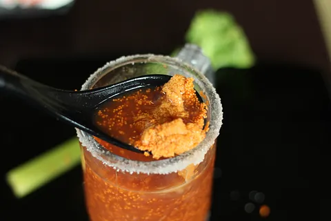 Pequeñas perlas de Masago dan un ligero crujido salino al contacto con la lengua, mientras que una cucharada precisa de Ikura fresca y Uni, en una mezcla con clamato, evoca la brisa del mar abierto.