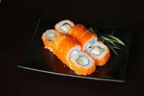 (5 Pzas) Rollo Envuelto en Masago. Presionar para ver opciones de tamaño.
