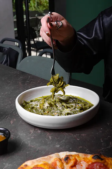 Pesto de albahaca con queso cotija, parmesano y piñon.