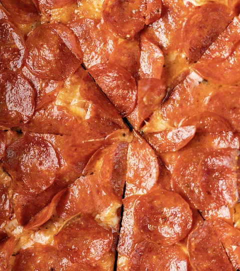 Pepperoni, mozzarella y pomodoro.