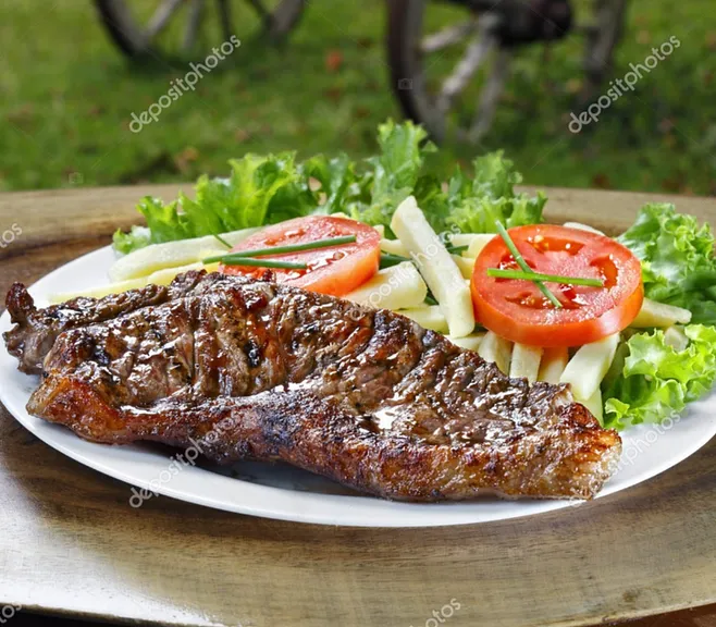 Un rico Corte acompañado con puré y ensalada