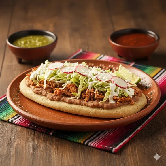 Huarache tradicional con tu elección de carne: Bisteck, Longaniza, Pechuga, Arrachera, Barriga o Campechanos