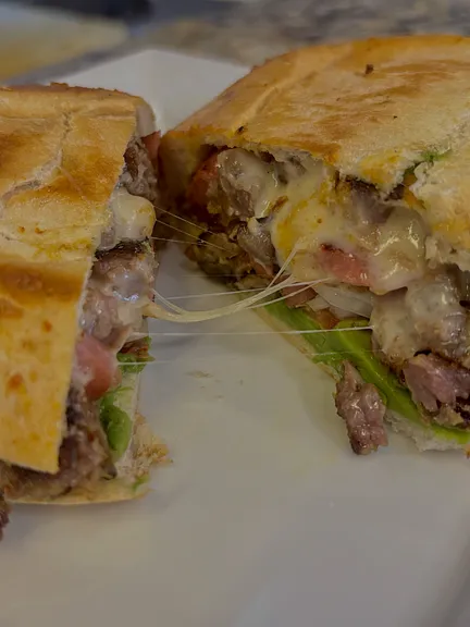 Como una gringa pero de arrachera, con rodajas de aguacate encima.